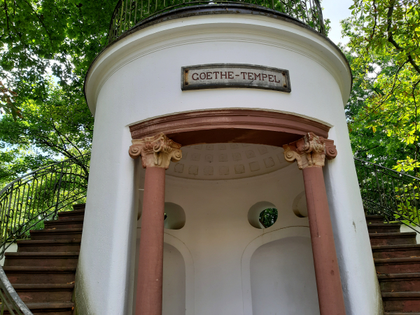 Nur einige Schritte sind die beiden Bauwerke am Hühnerweg auf dem Frankfurter Mühlberg voneinander entfernt: das Willemer-Häuschen und der Goethe-Tempel. Während ersteres fast Weltruhm erlangt zu haben scheint, kennen den Goethe-Tempel wohl nur die wenigsten Frankfurter.
