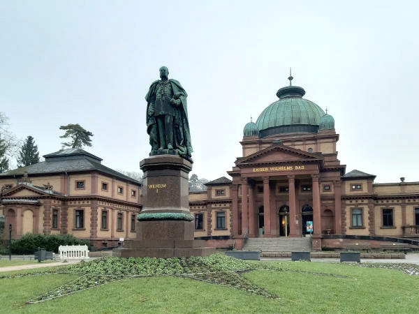 Das repräsentative Kaiser Wilhelms Bad, Sitz des exklusiven Kur-Royal Day Spa, mit der Statue Kaiser Wilhelms I. Weiterlesen
